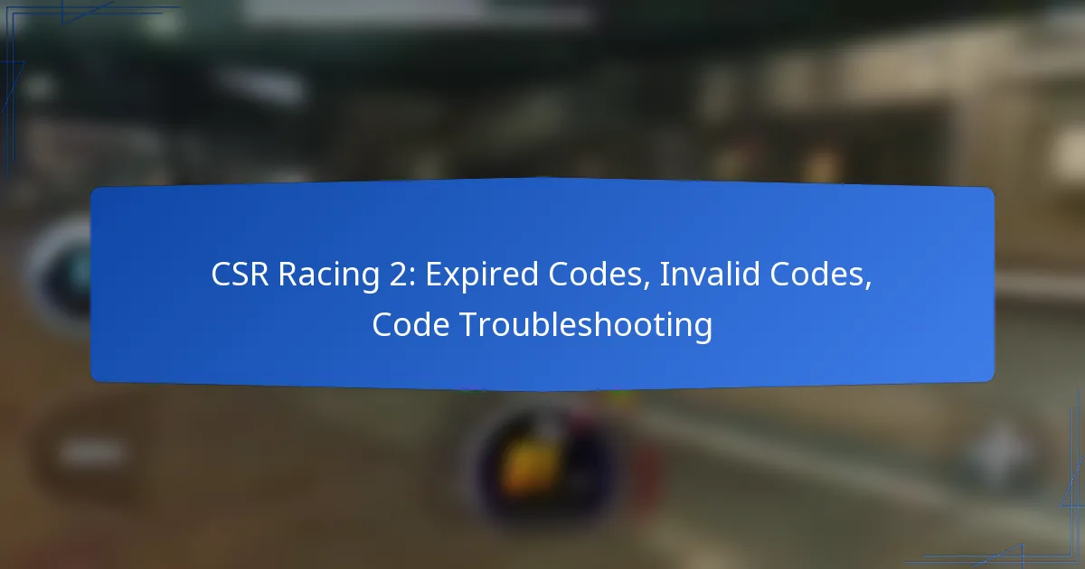 In CSR Racing 2, players may encounter expired or invalid codes that hinder their ability to access in-game rewards. Expired codes are those that can no longer be redeemed due to specific validity dates, while invalid codes may result from errors or restrictions. Troubleshooting these issues typically involves checking for mistakes, ensuring the game is updated, and seeking support if necessary.